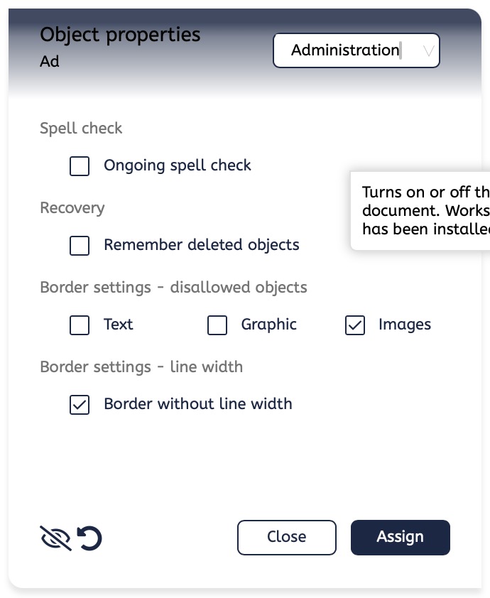 Grayscale only: By activating the grayscale in the document, all elements except for imported PDF files will be converted. This also applies to uploaded objects and elements from galleries.