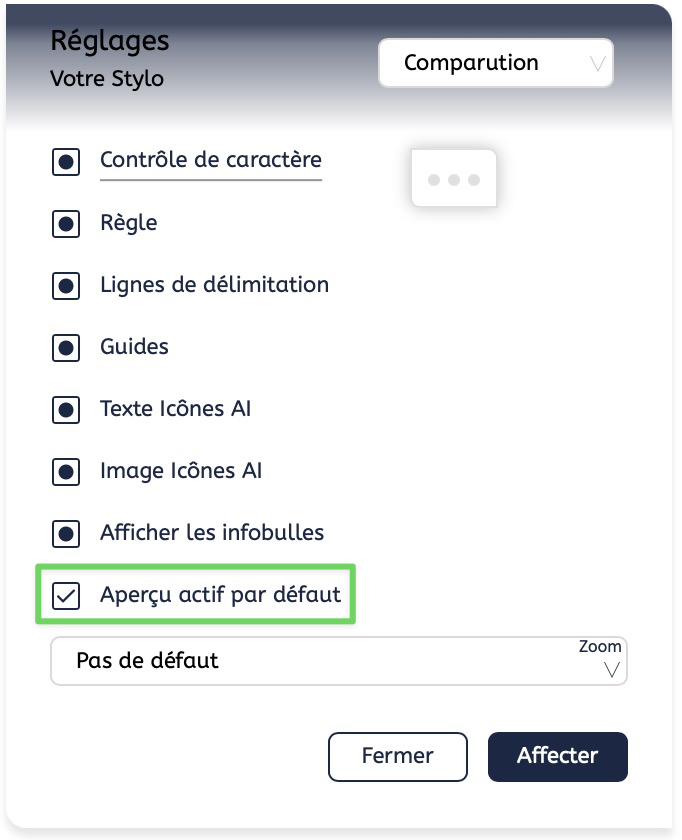 Dans les paramètres de Stylo, vous pouvez maintenant activer la prévisualisation par défaut en tant qu'utilisateur. Auparavant, après chaque nouvel appel de Stylo, ce réglage était réinitialisé et devait être réactivé.